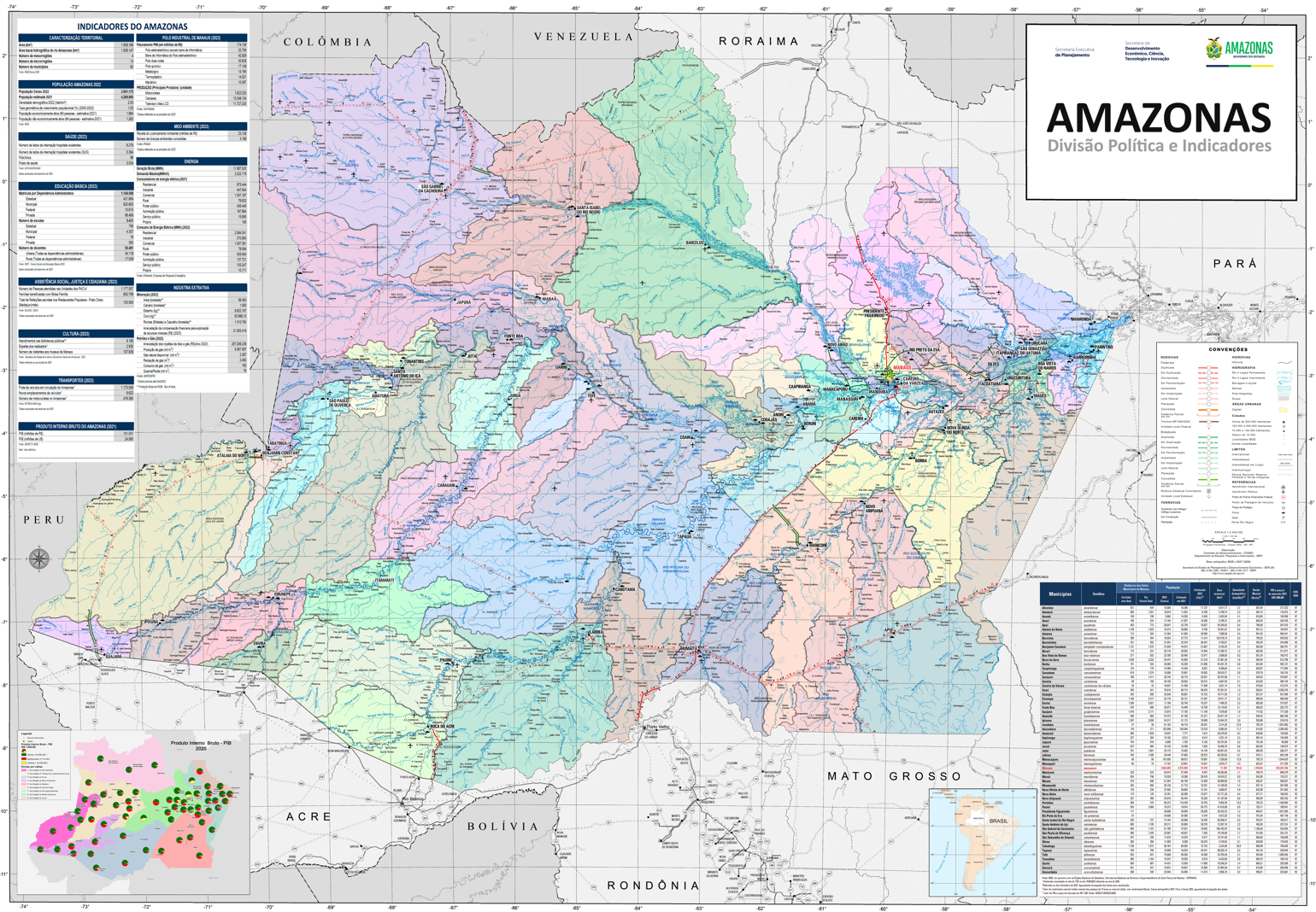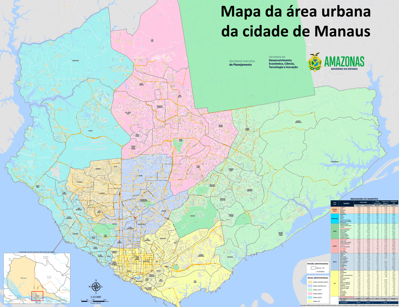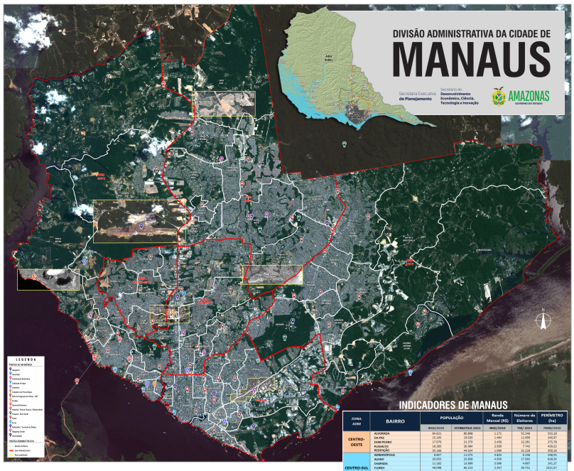 Conecte-se com Manaus! Acesse mapas da área urbana, divisões administrativas, indicadores populacionais e segurança pública da capital.