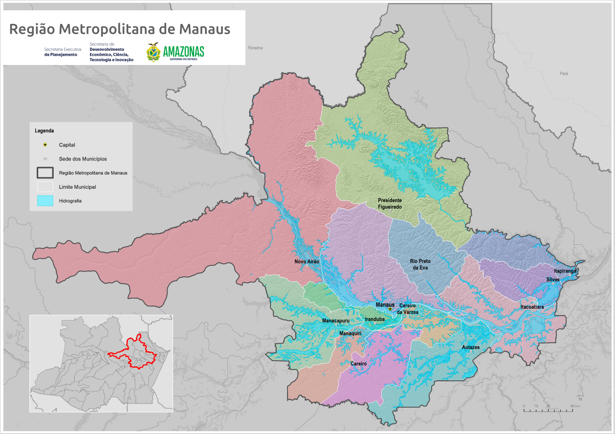 Explore a Região Metropolitana de Manaus! Visualize mapas detalhados e entenda a infraestrutura e distribuição urbana da nossa metrópole.